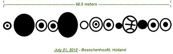 This July 21st "pictogram" was one of the most memorable circles in 2012. It was the longest formation to occur all summer, and when the two "additions" appeared the following night it became arguably the most "complex" crop formation yet to appear in southern Holland. And the fact that both Robbert and Stan saw visually -- for at least 15 seconds -- the two tall, translucent "light beings" at the edge of one of the large circles made it very special also.